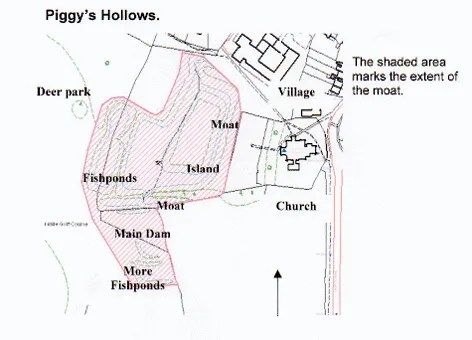 Additionally, in my research I found this picture of the area and where the moat was, my picture above was taken from just to the West of the church so I was looking at the Eastern part of the moat, how cool!