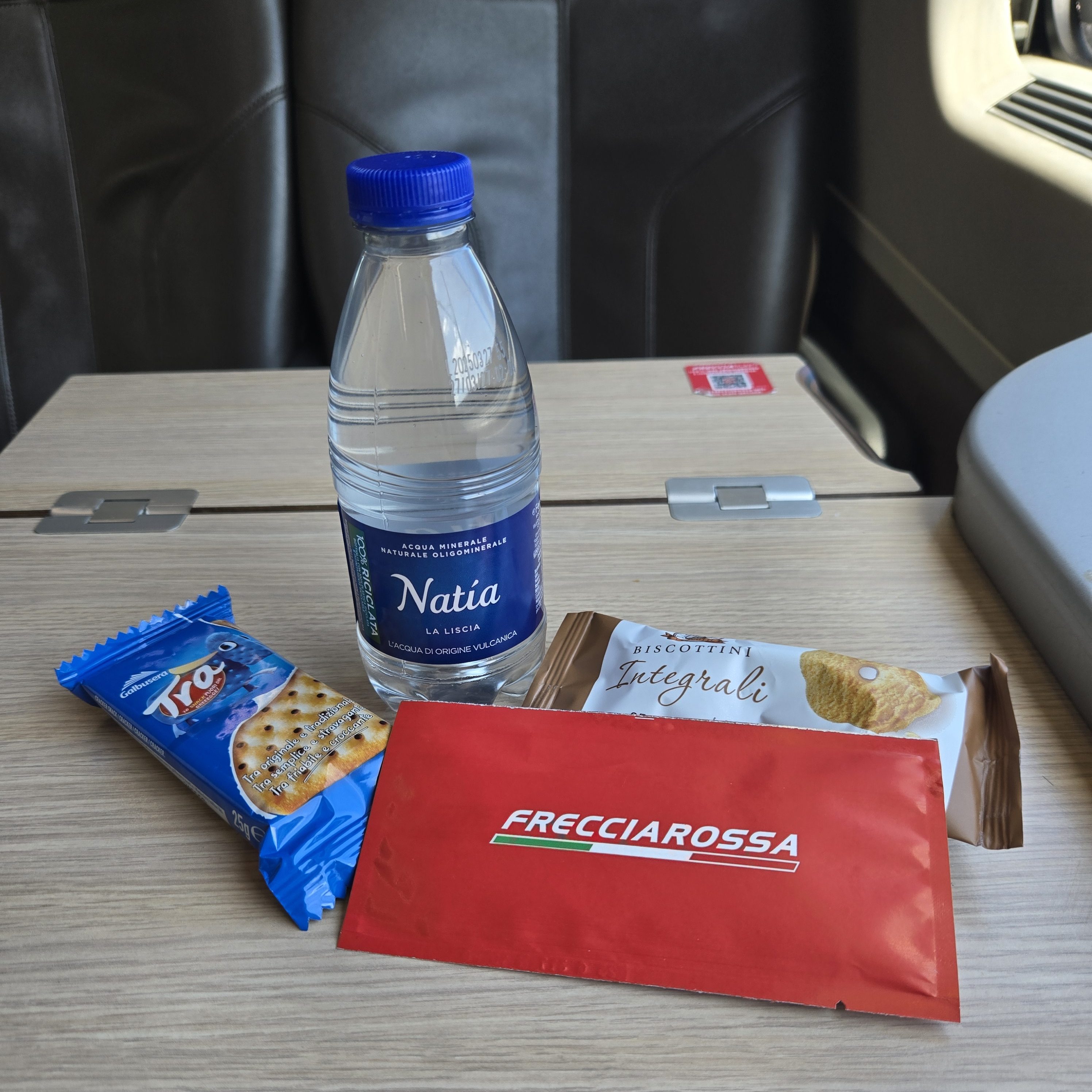 A little while after the train set off, some of the train staff came by and passed out a few complimentary items! Nothing too fancy, some biscuits, a water bottle, and some wipes. Nevertheless, I always love to get free stuff 🙂