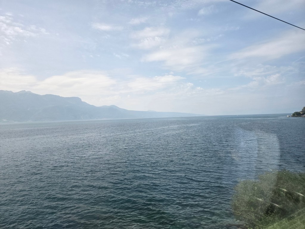The lake is mostly fed by the Rhône, the river I’ve been following since Visp, which then exits back out through the city of Geneva. The lake is a popular spot for tourists and as my train travelled along the shore I saw numerous families enjoying cooling off in the lakes water, which must definitely have been colder than the hot June weather outside. Each of the towns we passed through had mutliple hotels also, meaning it must be an excellent place to come stay for a few days on holiday! I must remember to do that sometime.