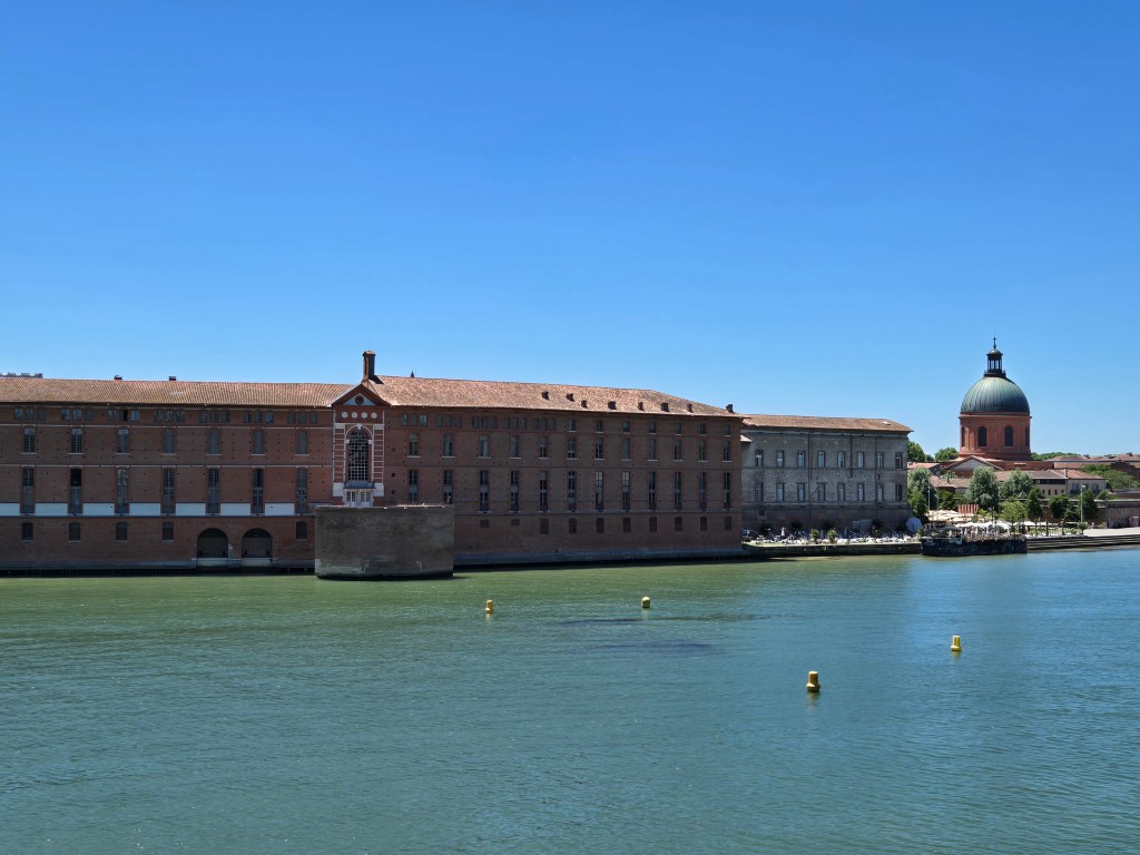 The buliding spans across about 500 metres of the southern bank of the Garonne, so the best way to see the whole thing is to walk along the northern bank as I did. I even included some excellent pictures of myself enjoying the view of the pink bricks of the structure!