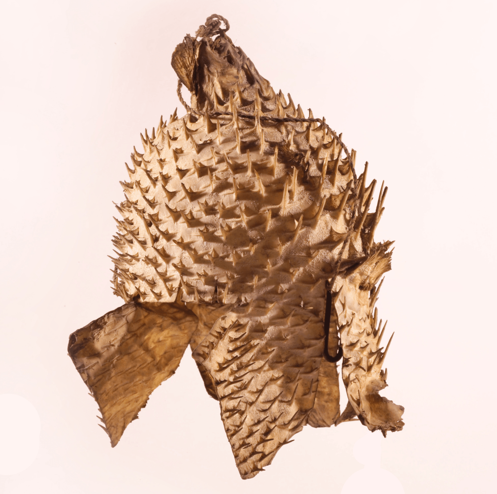 I couldn’t get any good pictures of the items in the exhibit here due to the odd lighting they had in this room, but I’ve put a picture of the coconut armour below which I managed to find on the museums website!