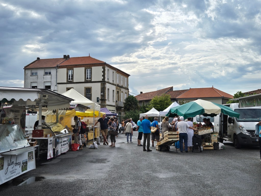 Soon enough we arrived at our final stop before our destination: Castelnau-Magnoac. This small town has a population of 765 people, a 97% decrease from Auch! There’s another small market here for us to check out and a lovely café for us to eat at.