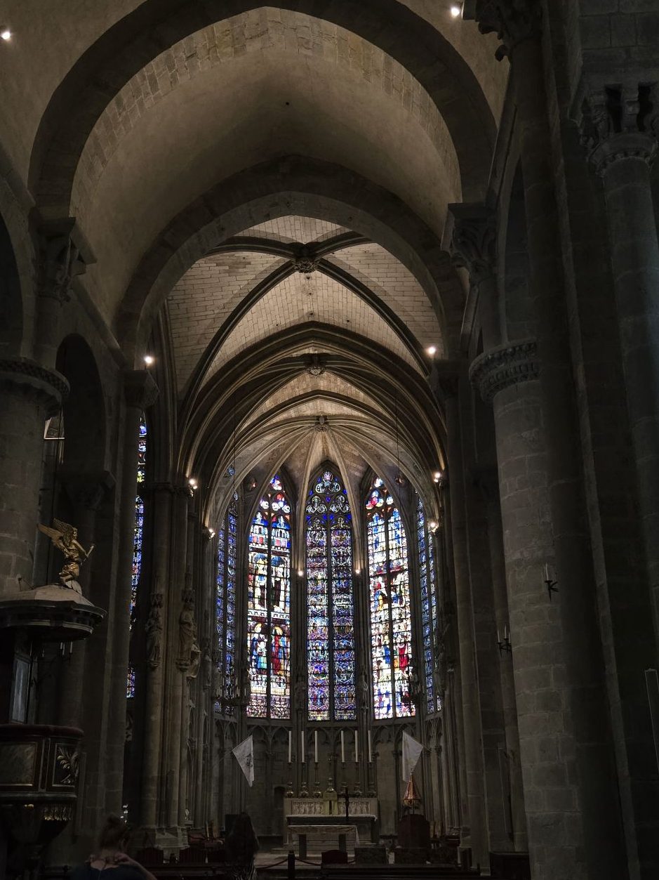 In the southernmost part of the walled city lies the Basilica, specifically Le Basilique Saint Nazarie. This large gothic style church still operates normally and we had to be careful and respectful as we toured.
