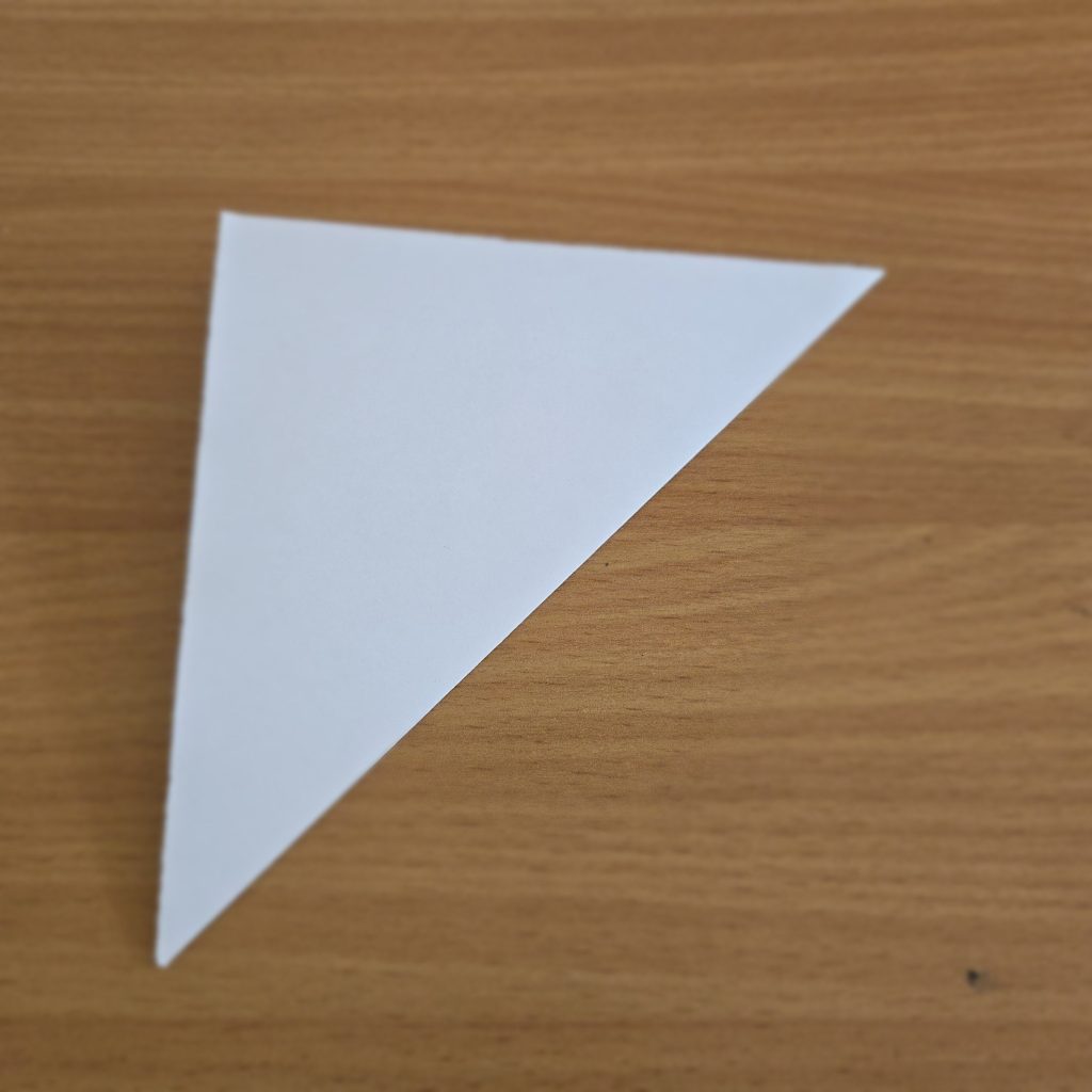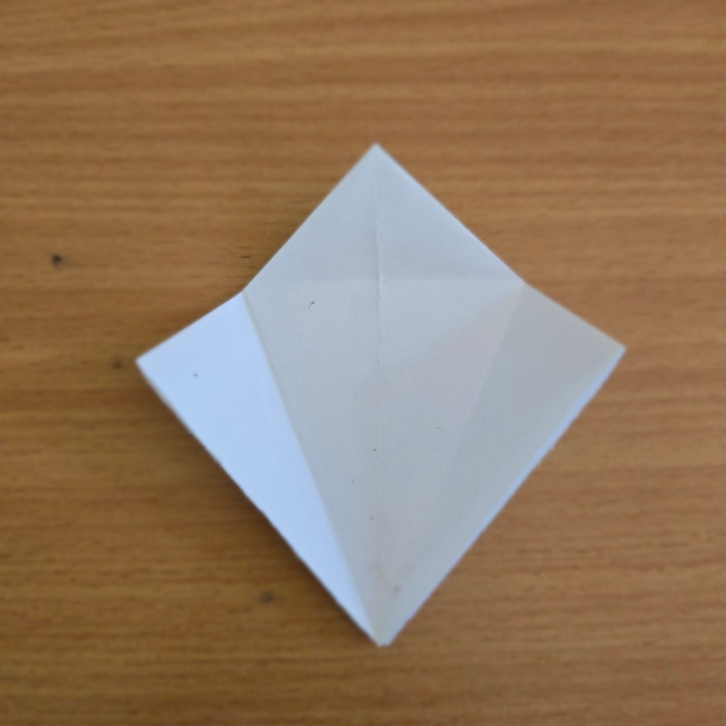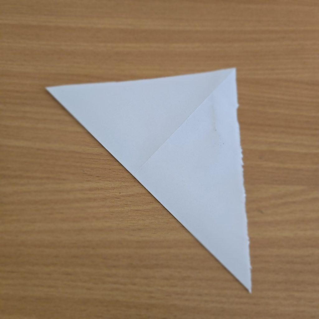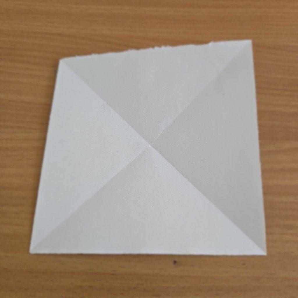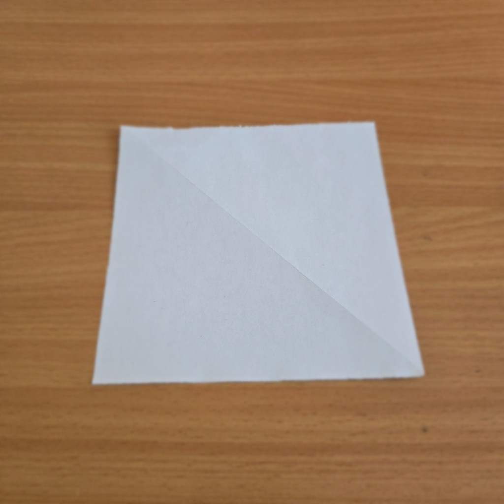 Most Origami folds start with a simple square piece of paper. Often you can buy these in shops, but you can also just cut one out of any size of paper too. With our paper ready, it’s time to fold: