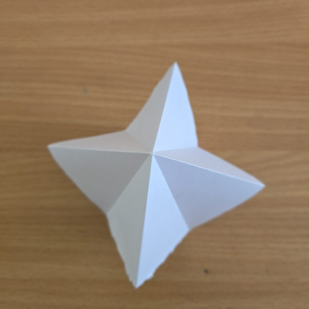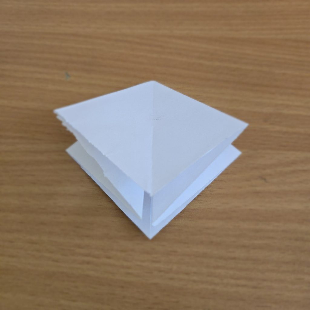 - Start with a square base. One point of the square will be totally open on the inside whilst another is totally closed, for the rest of these instructions the point will be pointed at you.
