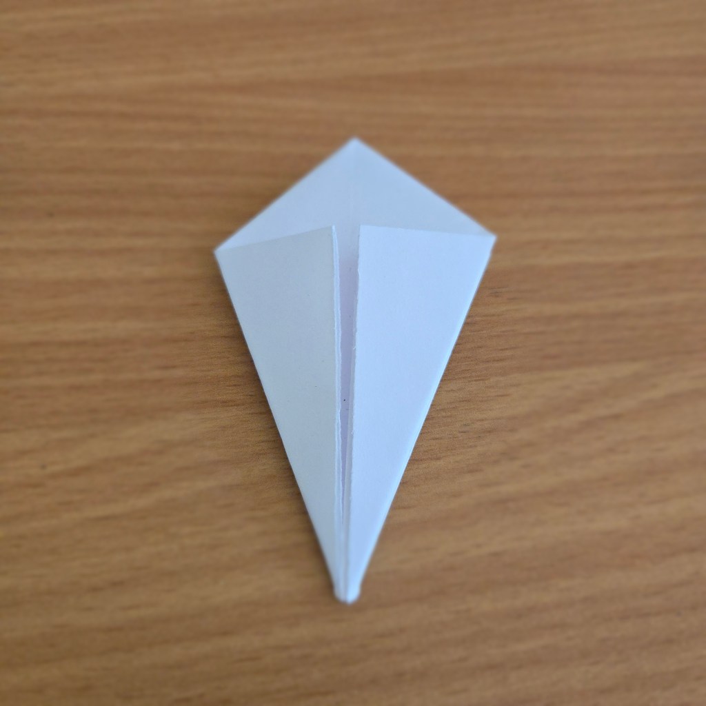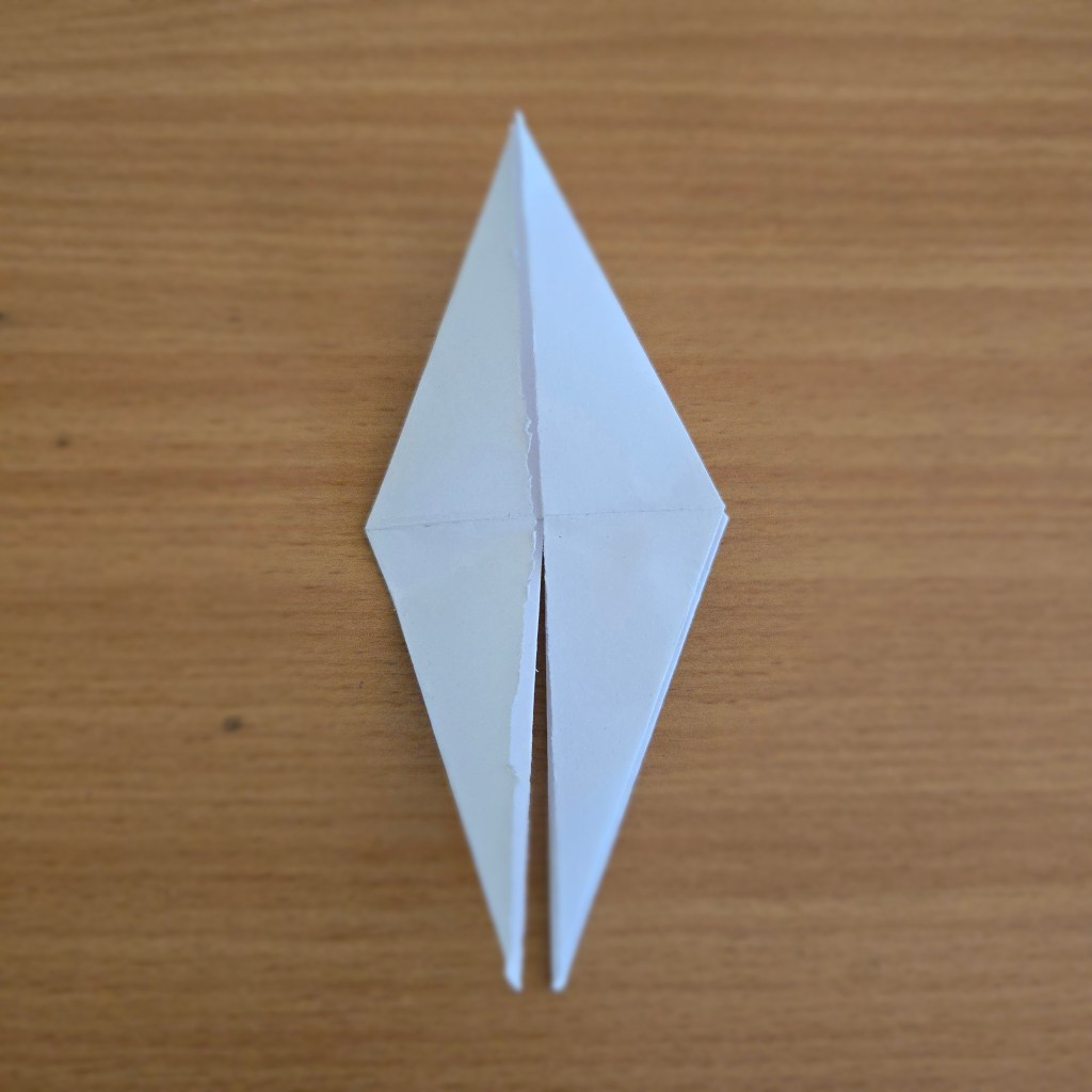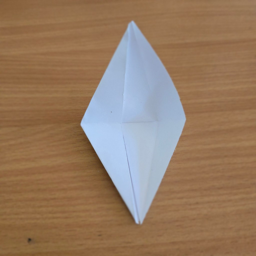5. Fold the top half of the kite towards the bottom, creasing and unfolding.