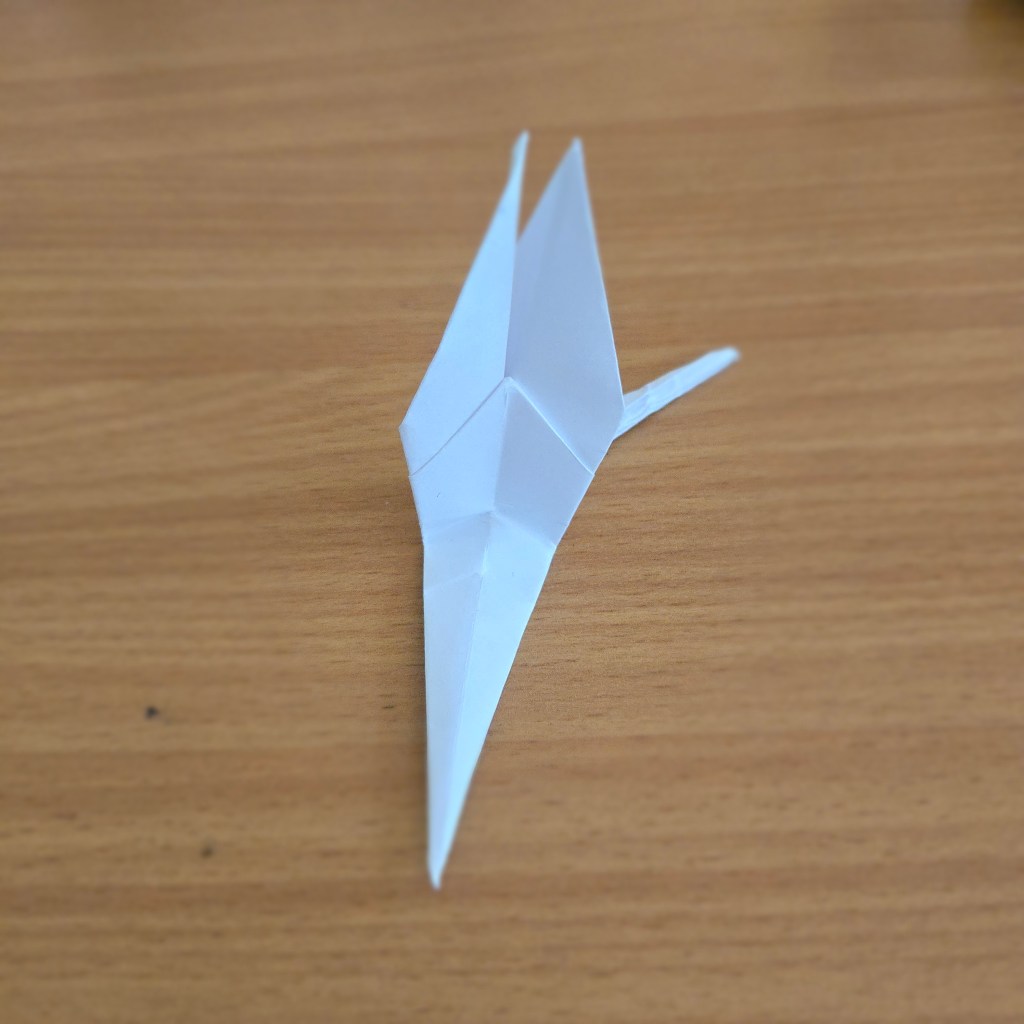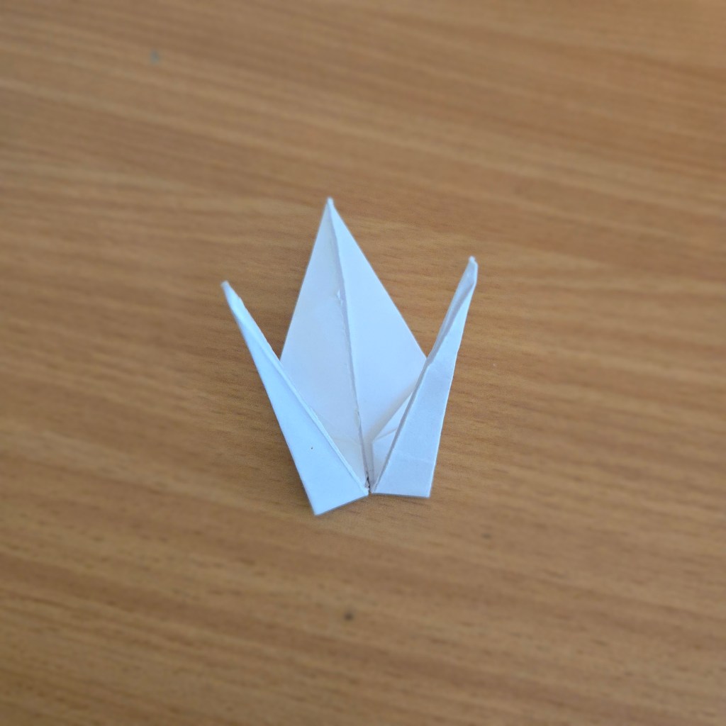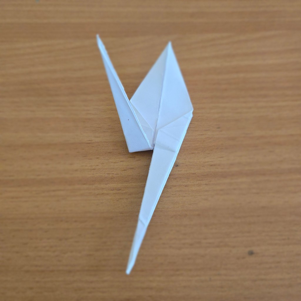 15. Fold part of the right prong down on itself to form a beak.
